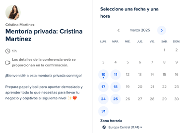 Si ya has adquirido tu sesión de formación es momento de reservar el día y hora que mejor te venga.